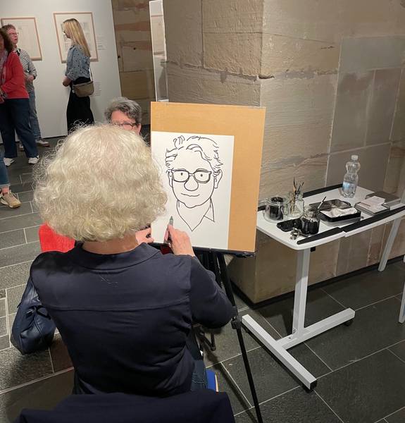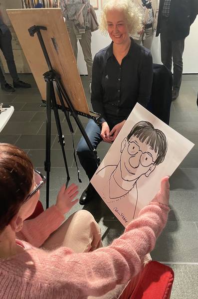 Fast 3 Stunden proträtierte die Illustratorin Catrin Raber an diesem Nachmittag die Besuchenden à la Loriot. Groß und Klein waren von diesem Angebot begeistert und freuten sich darüber ein Bild von sich mit Knollennase mit nach Hause nehmen zu dürfen.