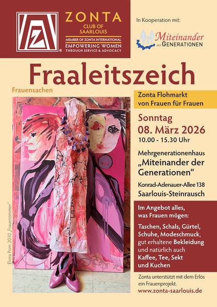 Weitere Informationen können der Homepage des Zonta Clubs e.V. Saarlouis entnommen werden: www.zonta-saarlouis.de - https://www.zonta-saarlouis.de/veranstaltungen/fraaleitszeich/